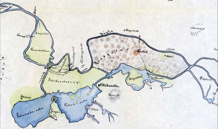 - Þið ættuð að skoða loftmynd af vatninu eins og það er núna og bera saman við gamla kortið.