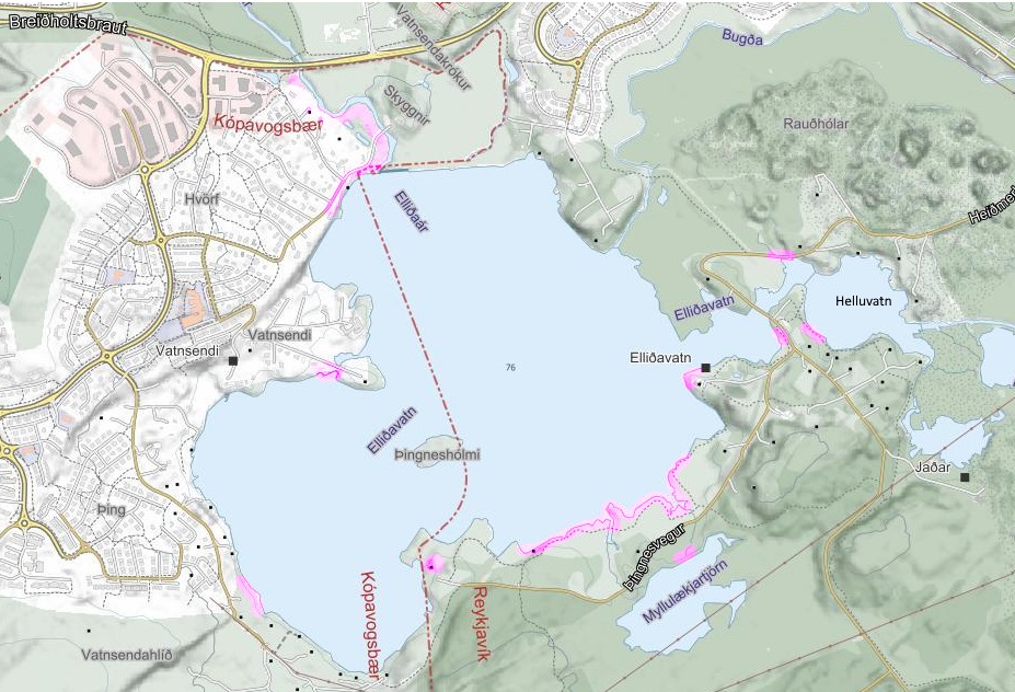 - Skoðið einnig vel hvar Elliðaárnar renna niður Elliðaárdal.