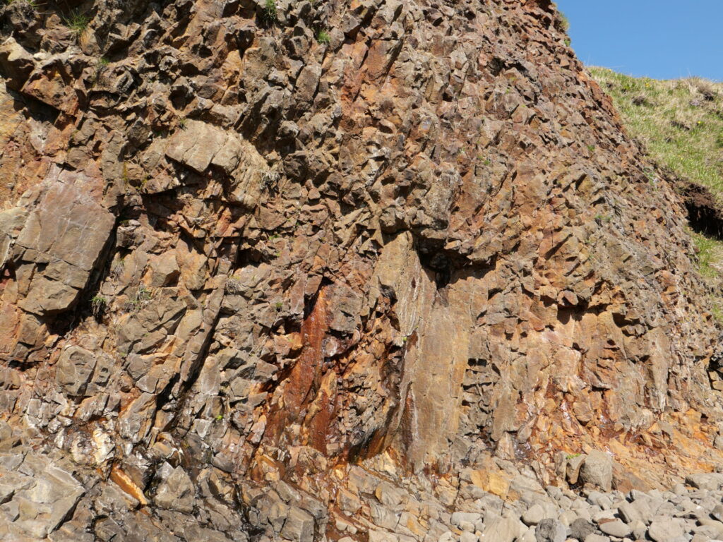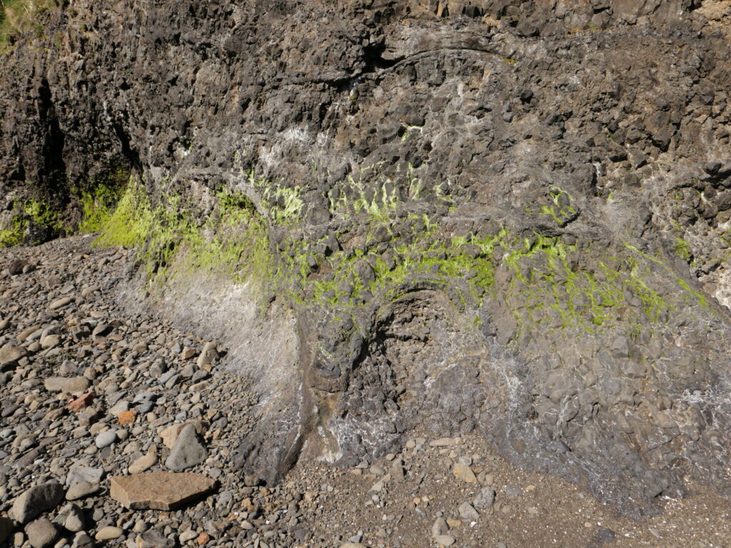6. Skoðið stuðla í Reykjavíkurgrágrýtinu. Takið myndir. Íhugið hvar kólnunarflötur þess hefur verið.