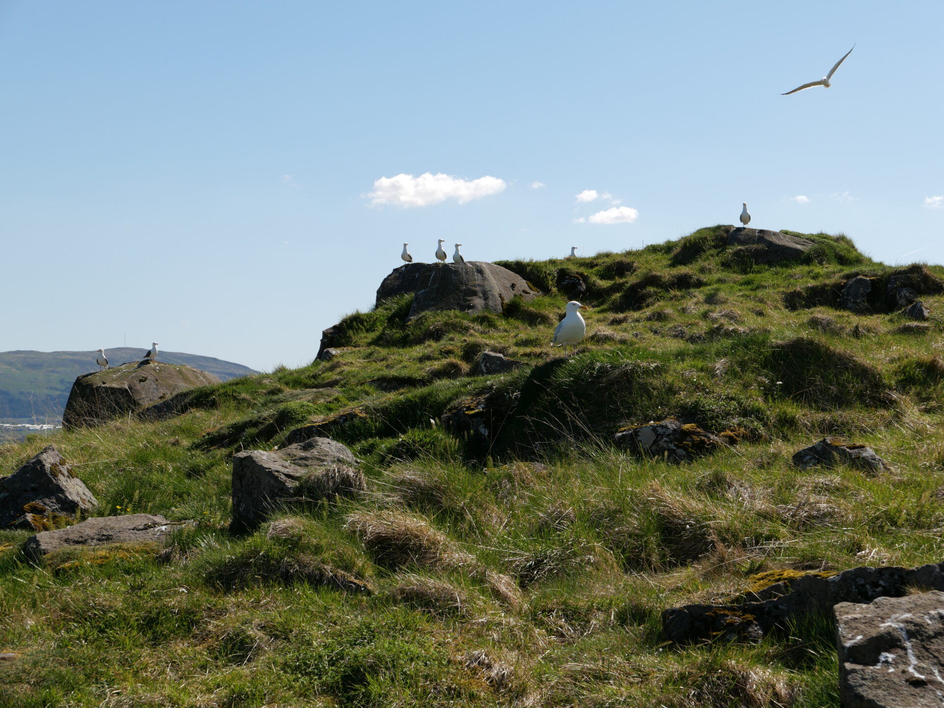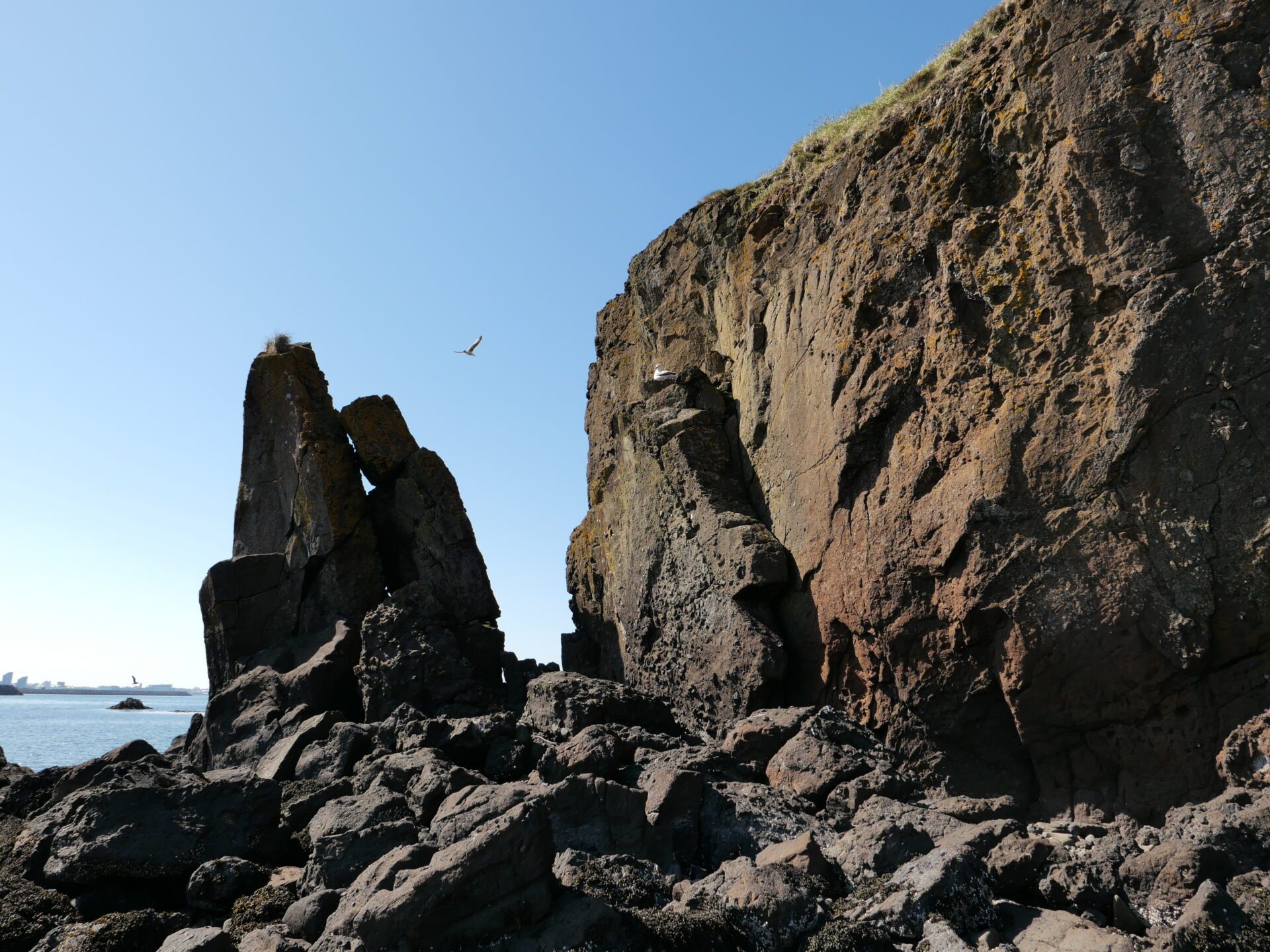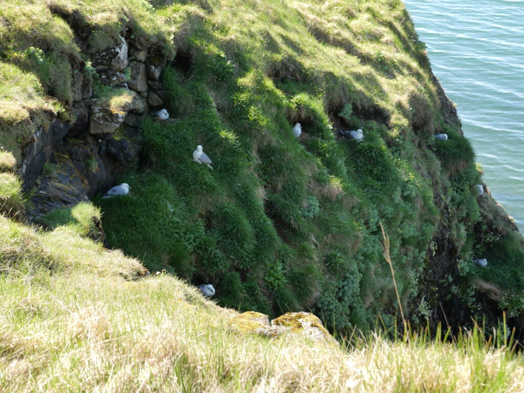 Hér sjáum við máfa á hól og fýla í bjargi – (SH).