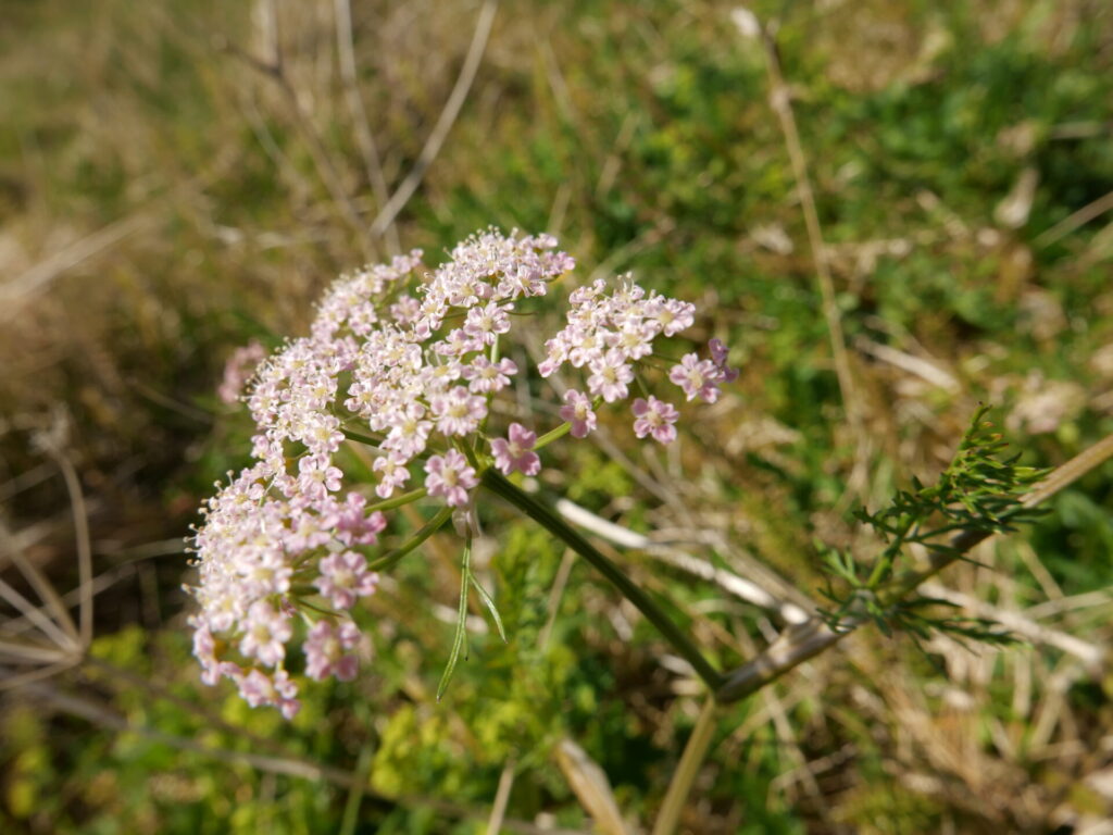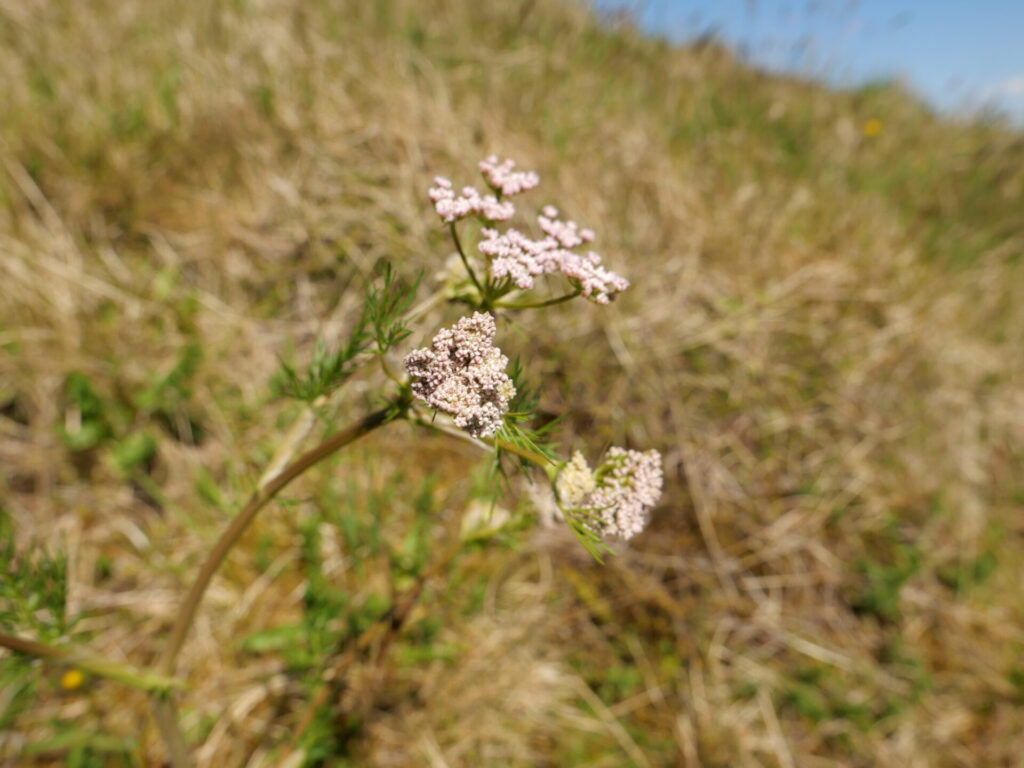 Fjölbreyttur gróður: Kúmen, elfting, hrafnaklukka, hófsóley, mjaðjurt – (SH).