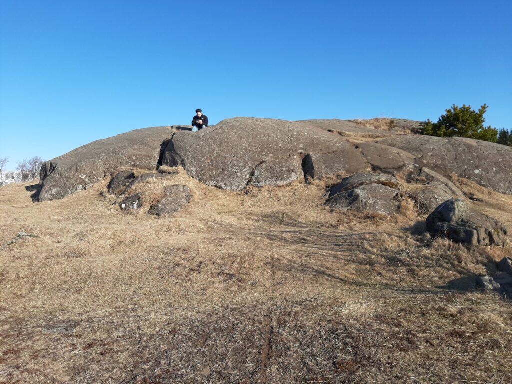 Það er skemmtilegt að leika sér á þessum fallega kletti.