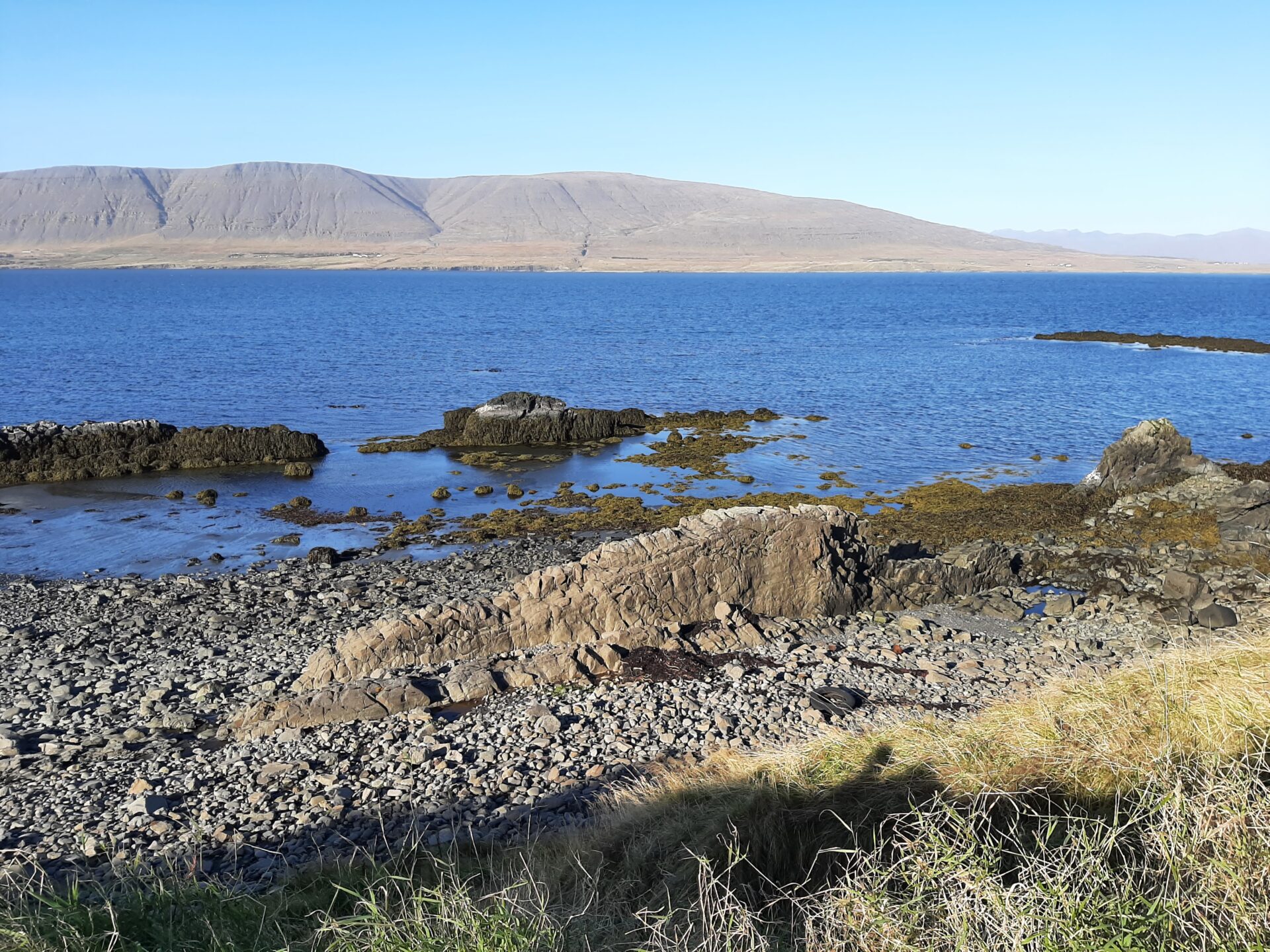 Berggangar og klettar á fjöru