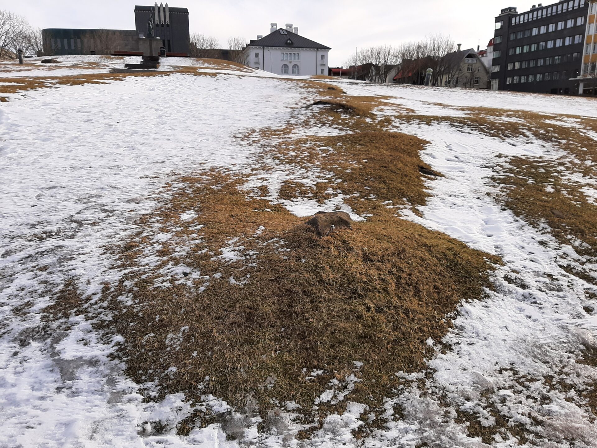 Ef vel er að gáð sjást merki elsta þjóðvegarins til Reykjavíkur í Arnarhóli – en leiðin lá yfir hólinn og að Læknum. Sjá myndir hér að neðan.