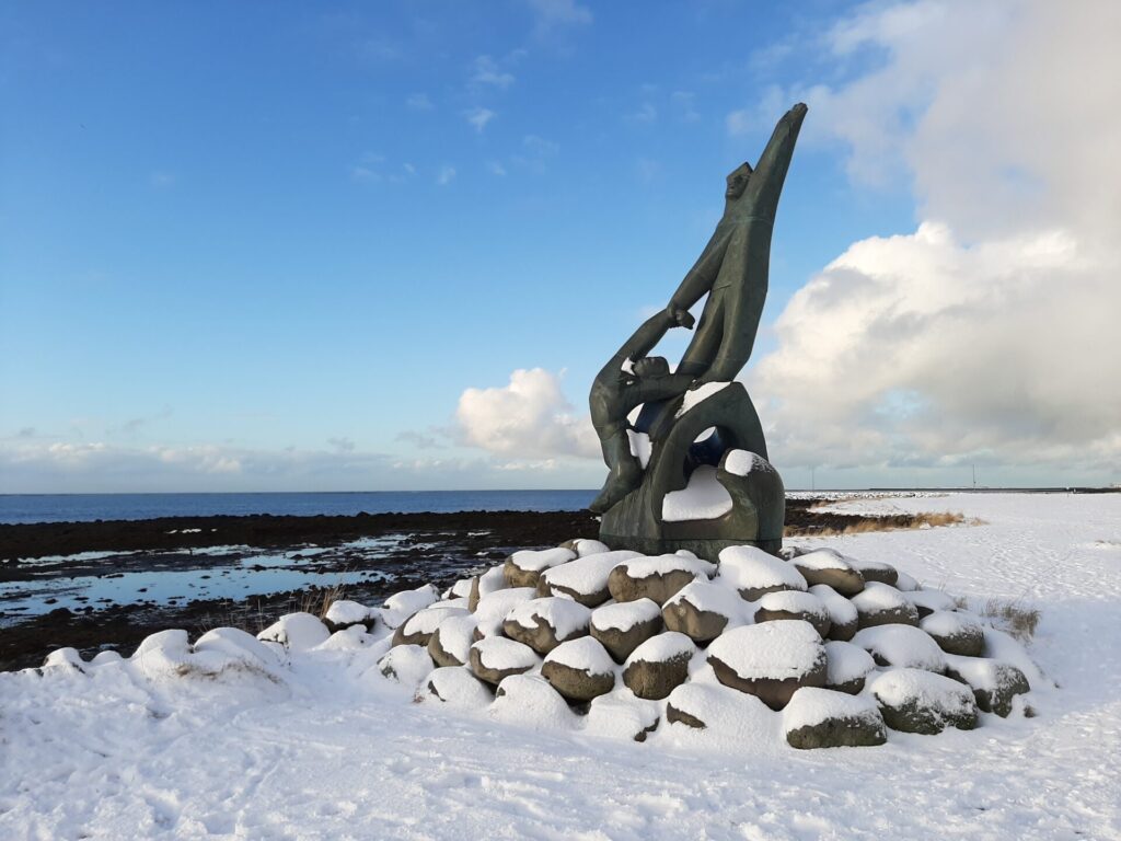 Styttan sýnir mjög vel kraftinn sem þarf til að bjarga manni úr sjávarháska. Sjá má fyrir sér ákveðna hreyfingu sem nær frá hægri fæti mannsins sem er að drukkna upp í vinstri hönd þess sem er að bjarga honum. Listaverkið á mjög vel heima nálægt sjónum.