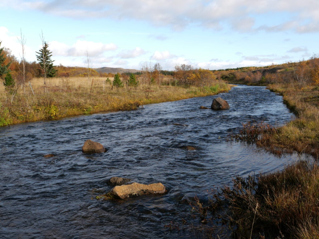 Í ánni lifir bæði lax og sjóbirtingur. Lesa um þessa fiska.